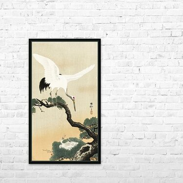 Get this artwork "Japanese crane bird on branch of pine 1900 - 1930 by Ohara Koson 1877-1945." in a framed print.