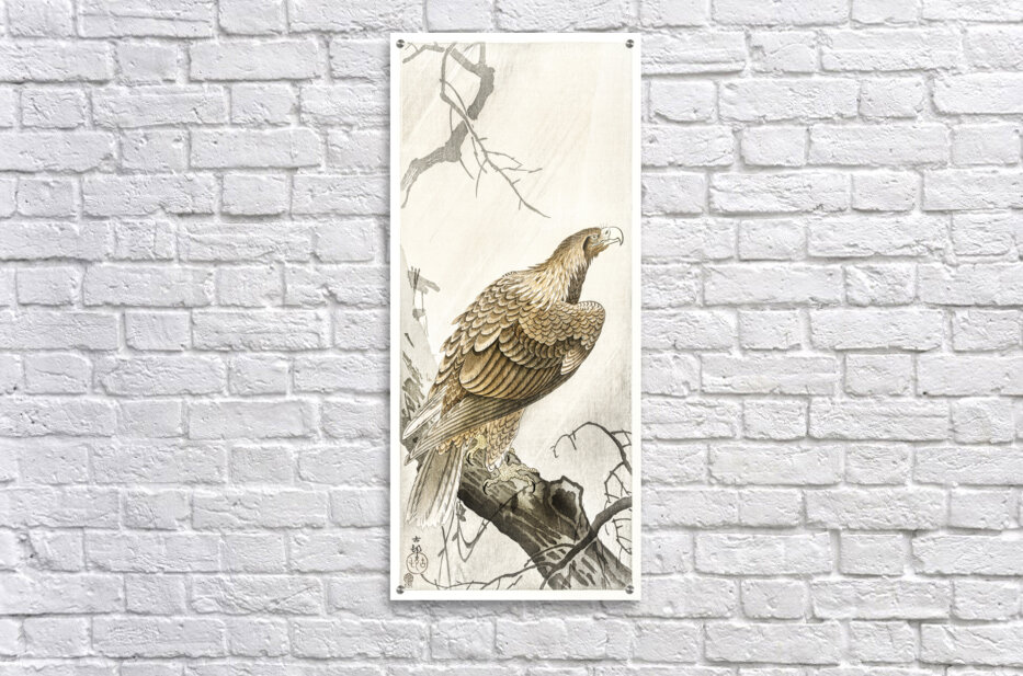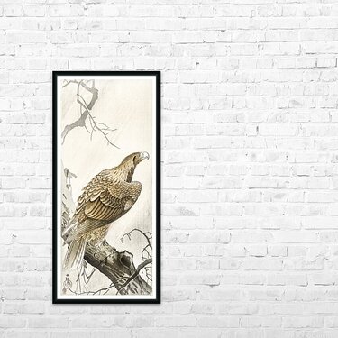 Eagle on tree branch 1900 - 1910 by Ohara Koson 1877-1945. Picture Frame Printing