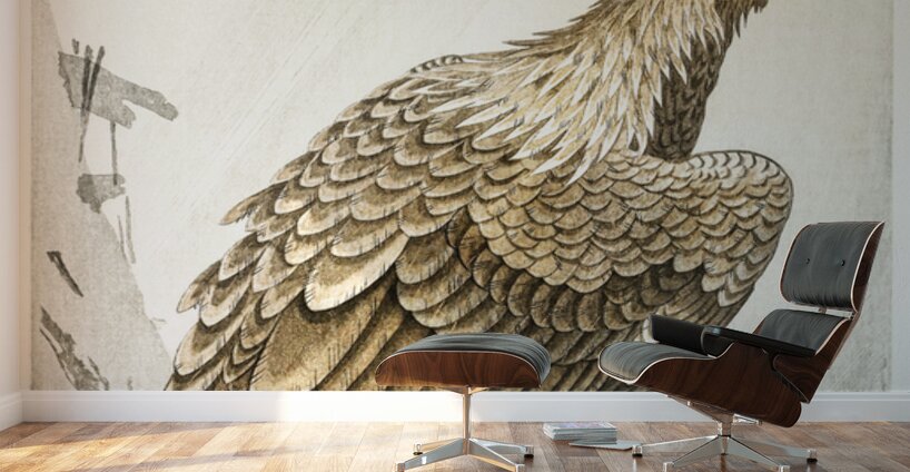 Eagle on tree branch 1900 - 1910 by Ohara Koson 1877-1945. Wood print
