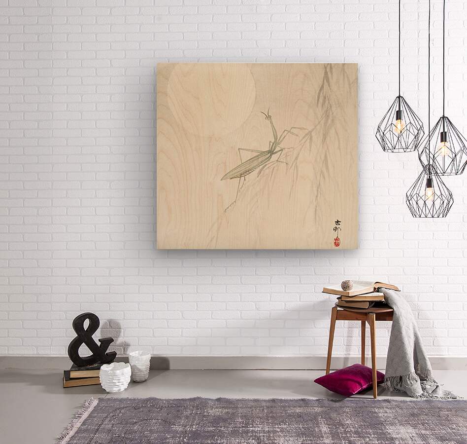 Praying mantis 1900 - 1936 by Ohara Koson 1877-1945. Wood print