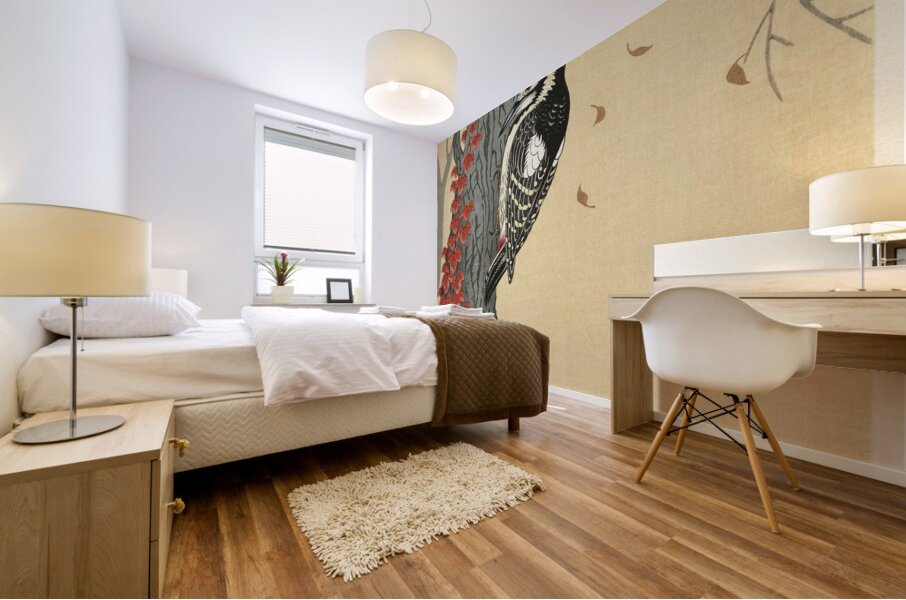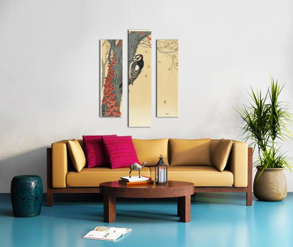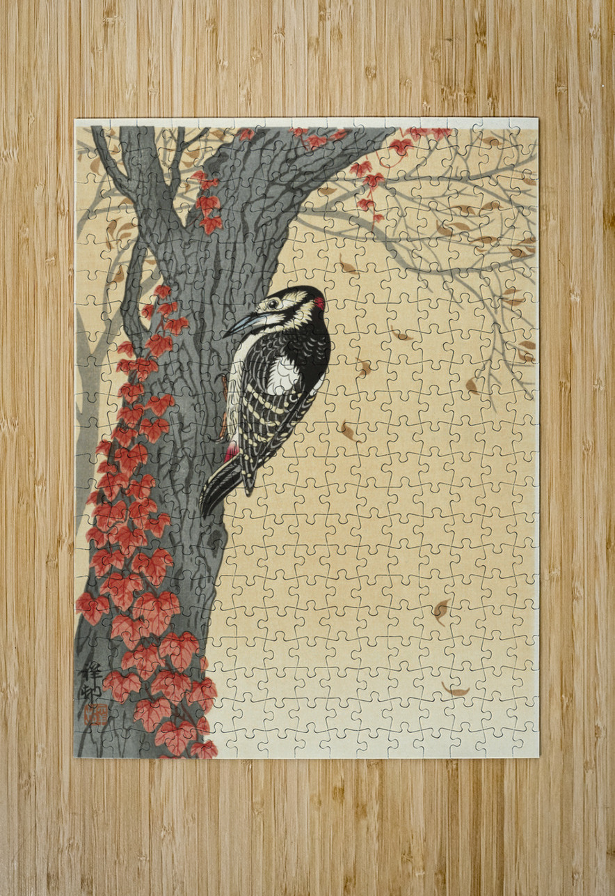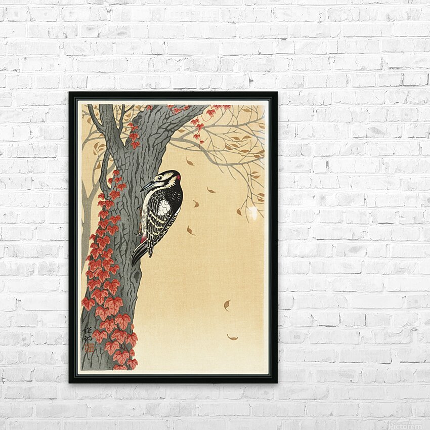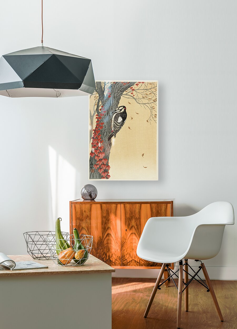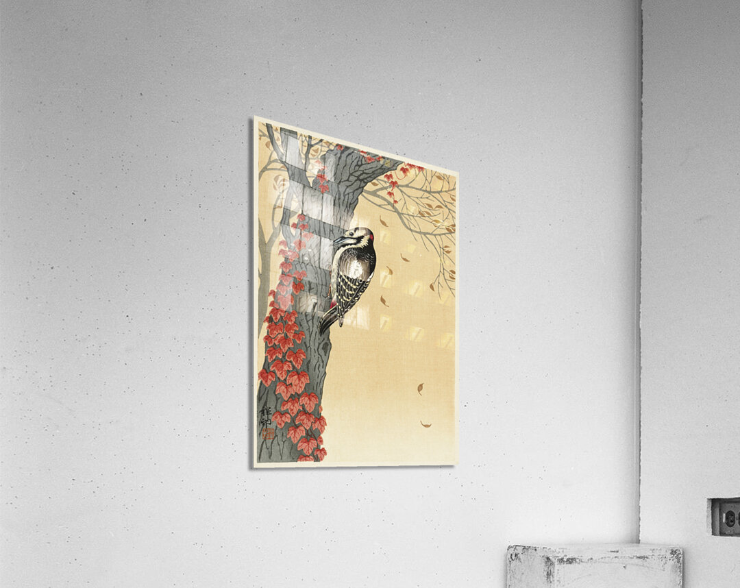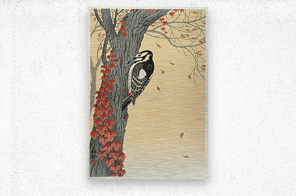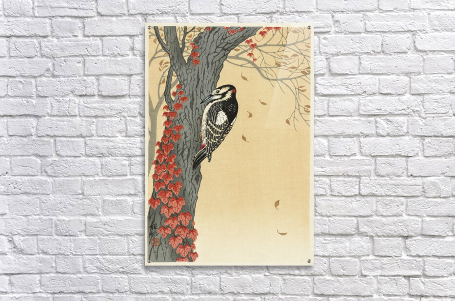 Get this artwork "Great spotted woodpecker in tree with red ivy 1925 - 1936 by Ohara Koson 1877-1945." in a framed print.