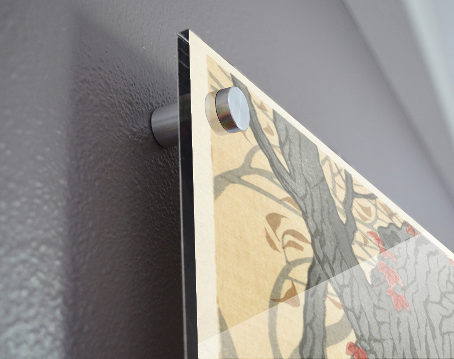 Printed to the edge - Ready to hang - provided with 4 premium polished aluminum stand off ( wall screws and mounting hardware provided ) We suggest a thicker 3/16" acrylic for any size over 42 inches to guarantee a straight acrylic, without curvature