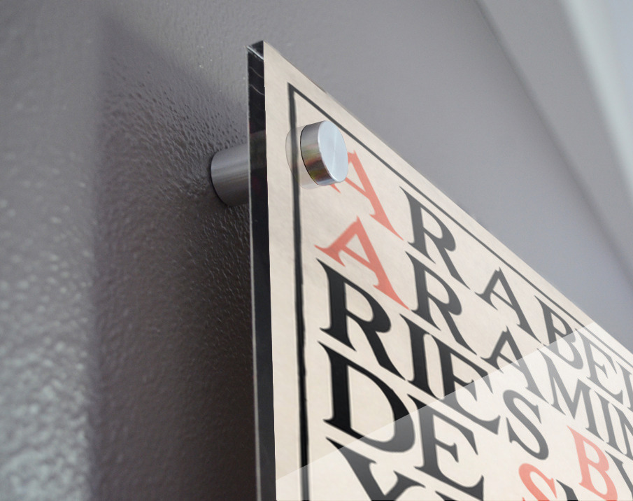 Printed to the edge - Ready to hang - provided with 4 premium polished aluminum stand off ( wall screws and mounting hardware provided ) We suggest a thicker 3/16" acrylic for any size over 42 inches to guarantee a straight acrylic, without curvature