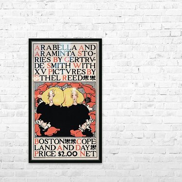 Get this artwork "Arabella and Araminta Stories 1895 Art Nouveau poster of twin blonde girls by Ethel Reed. " in a framed print.