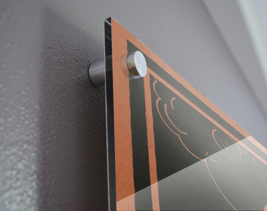 Printed to the edge - Ready to hang - provided with 4 premium polished aluminum stand off ( wall screws and mounting hardware provided ) We suggest a thicker 3/16" acrylic for any size over 42 inches to guarantee a straight acrylic, without curvature