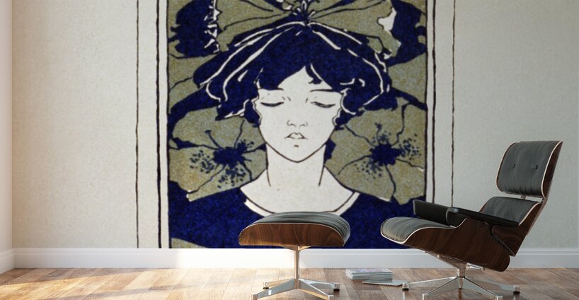 Behind the Arras 1895 vintage poster of a woman by Ethel Reed.