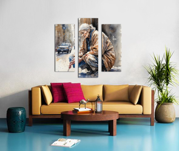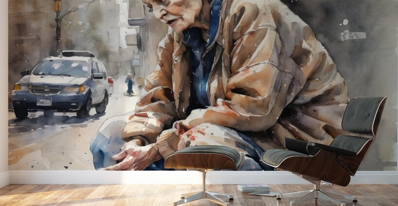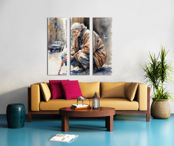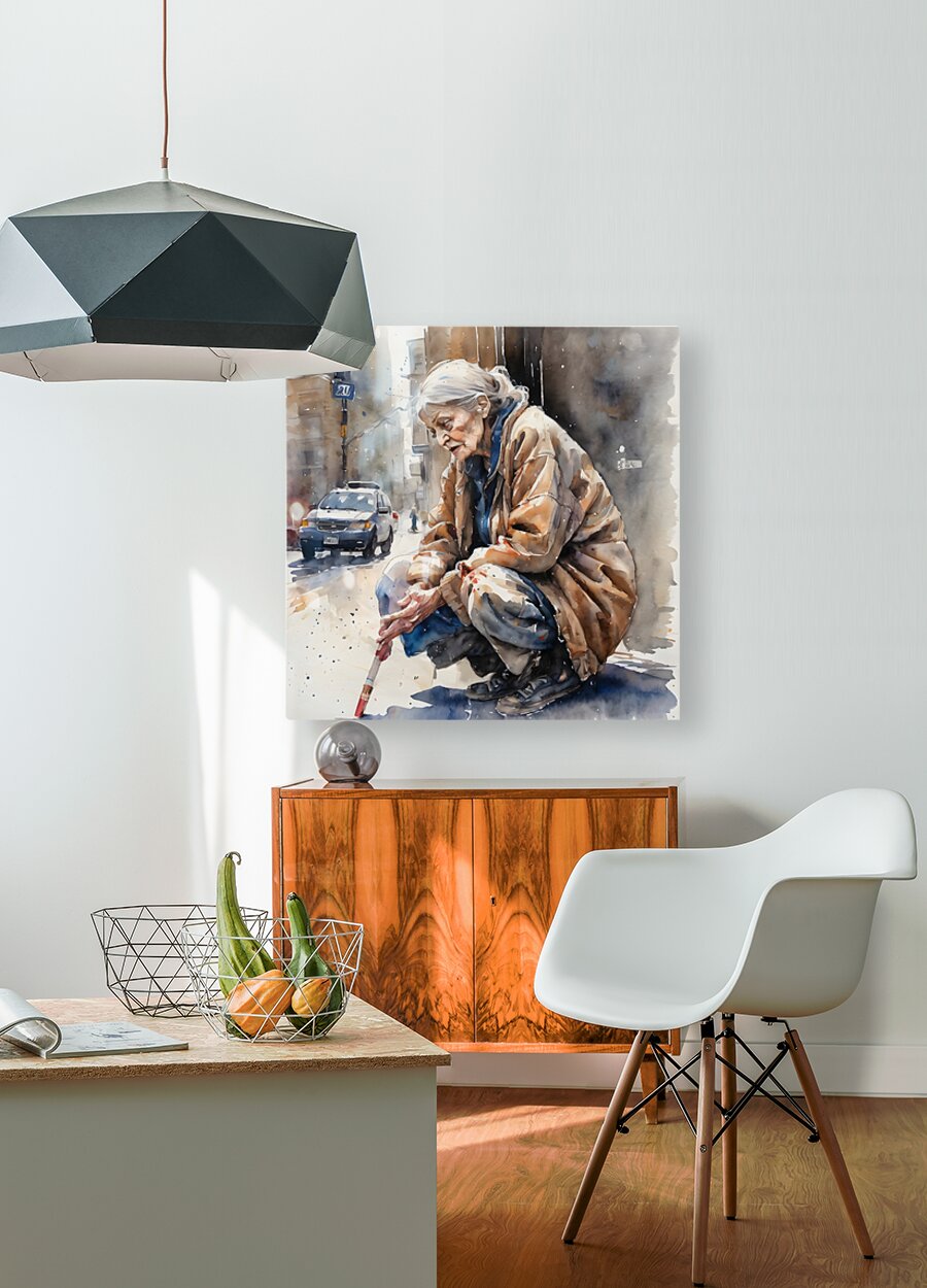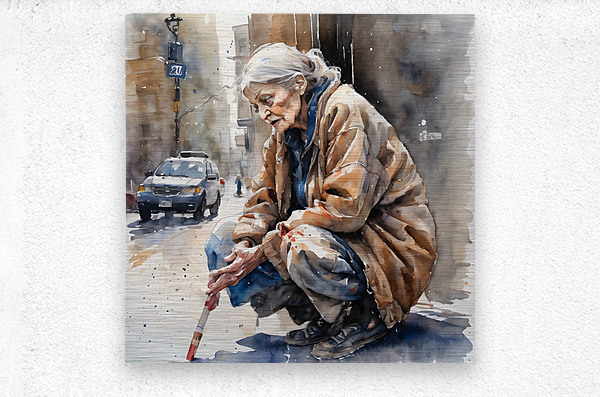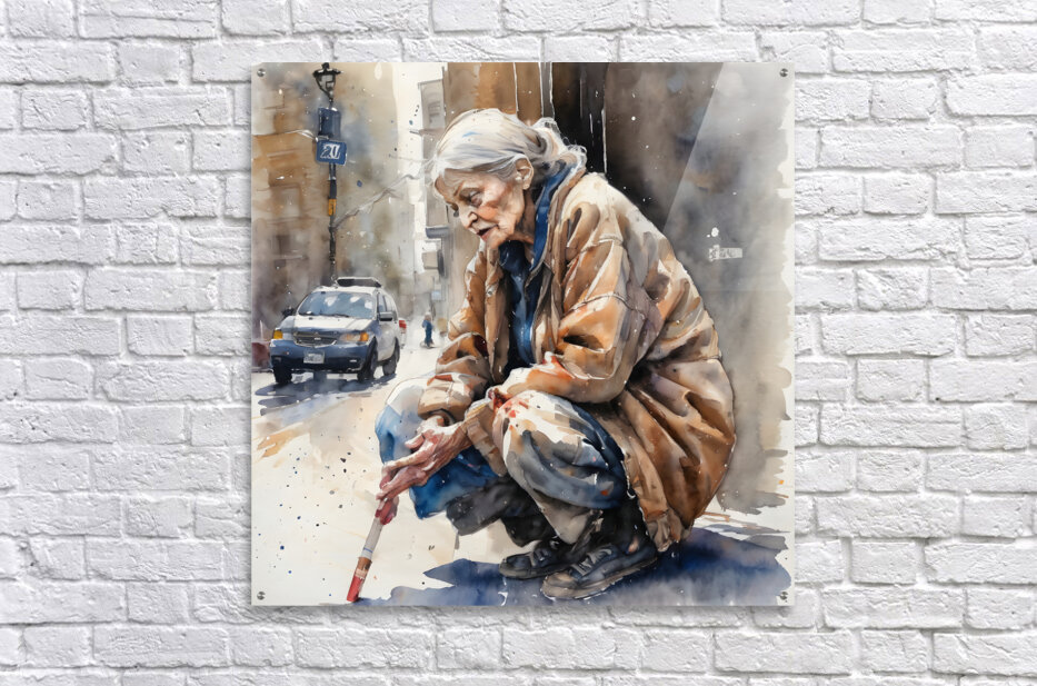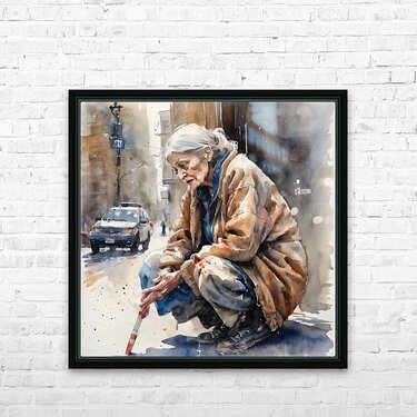 Watercolor of a 70 year old woman who is homeless and cold and in his eyes you can see pain from years of loss and desperation. “Deliver Me“ By B...[+]