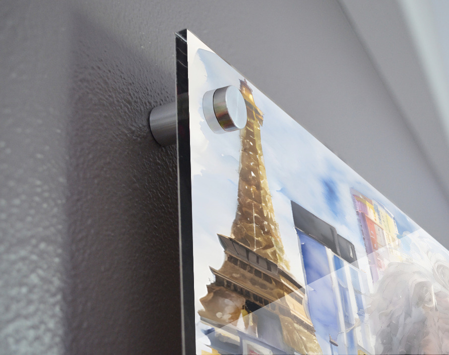 Printed to the edge - Ready to hang - provided with 4 premium polished aluminum stand off ( wall screws and mounting hardware provided ) We suggest a thicker 3/16" acrylic for any size over 42 inches to guarantee a straight acrylic, without curvature