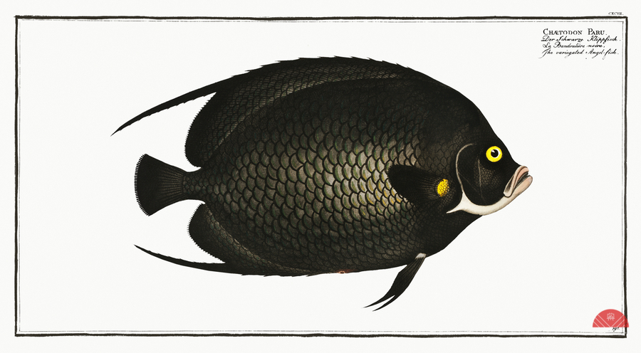 Variegated Angel-fish Chaetodon Paru from Ichtylogie ou Histoire naturelle: génerale et particuliére des poissons 1785-1797 by Marcus Eliser 1723-17...[+]