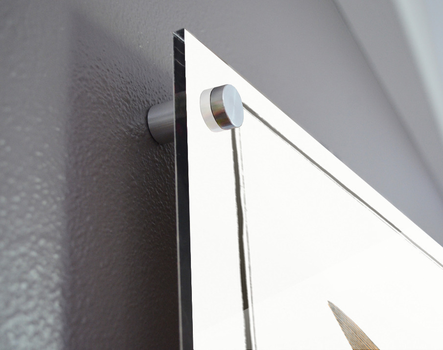 Impression sur acrylique avec entretoises ( cylindres métalliques )