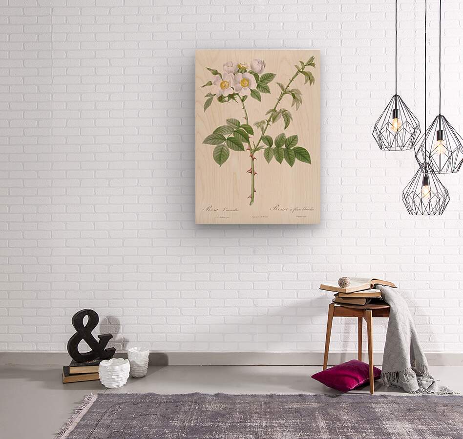 White Flowered Rose Rosa leucantha from Les Roses 1817–1824 by Pierre-Joseph Redouté.