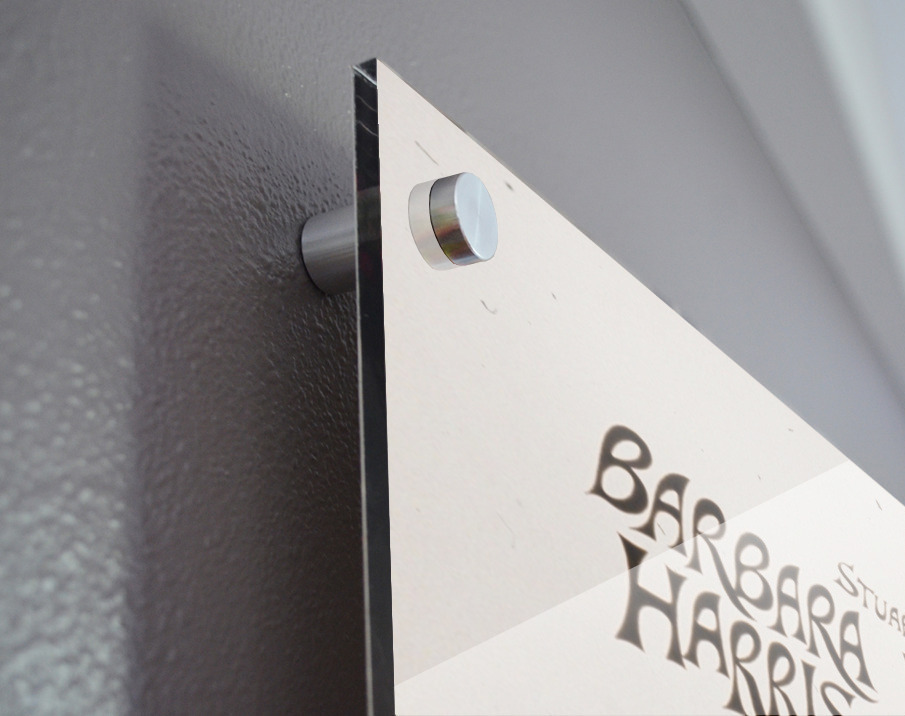 Impression sur acrylique avec entretoises ( cylindres métalliques )