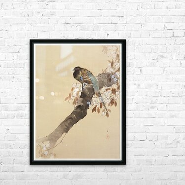 Pheasant on cherry blossom branch 1887-1945 by Ohara Koson 1877-1945. Cadre photo