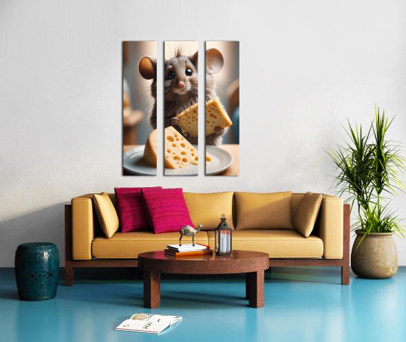 “A (fuzzy surprised mouse:1.1) stuffing his face with (cheese:1.3), Hyperrealistic, splash art, concept art, mid shot, intricately detailed, color depth, dramatic, 2/3 face angle, side light, pantry background" (Copyright ISHISH 2024 All rights Reserved)