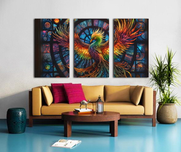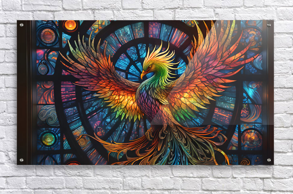 A Stained Glass Crystalline Rainbow Phoenix By ISHISH Picture Frame Printing