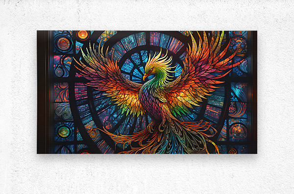 A Stained Glass Crystalline Rainbow Phoenix By ISHISH  HD Metal print with Floating Frame on Back