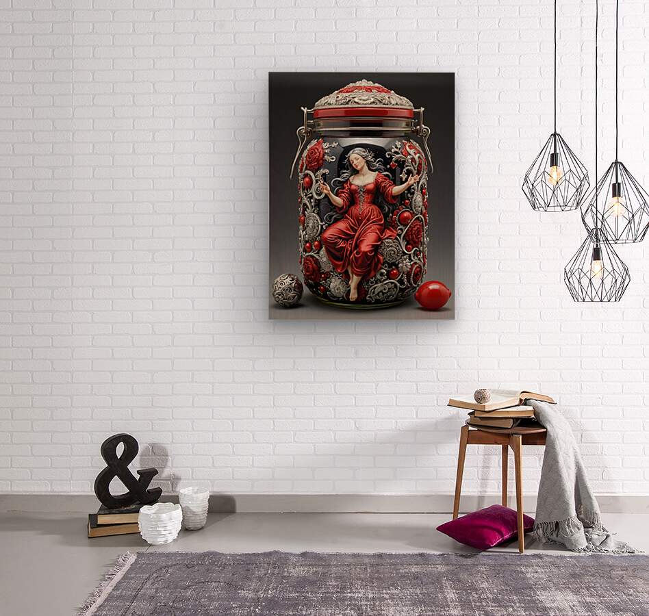 Storing your dreams in a jar. In the style of David MacDowell, Bernardo Strozzi and Greg Simkins. Deep colours with reds and silver. Intricate fabric ...[+]