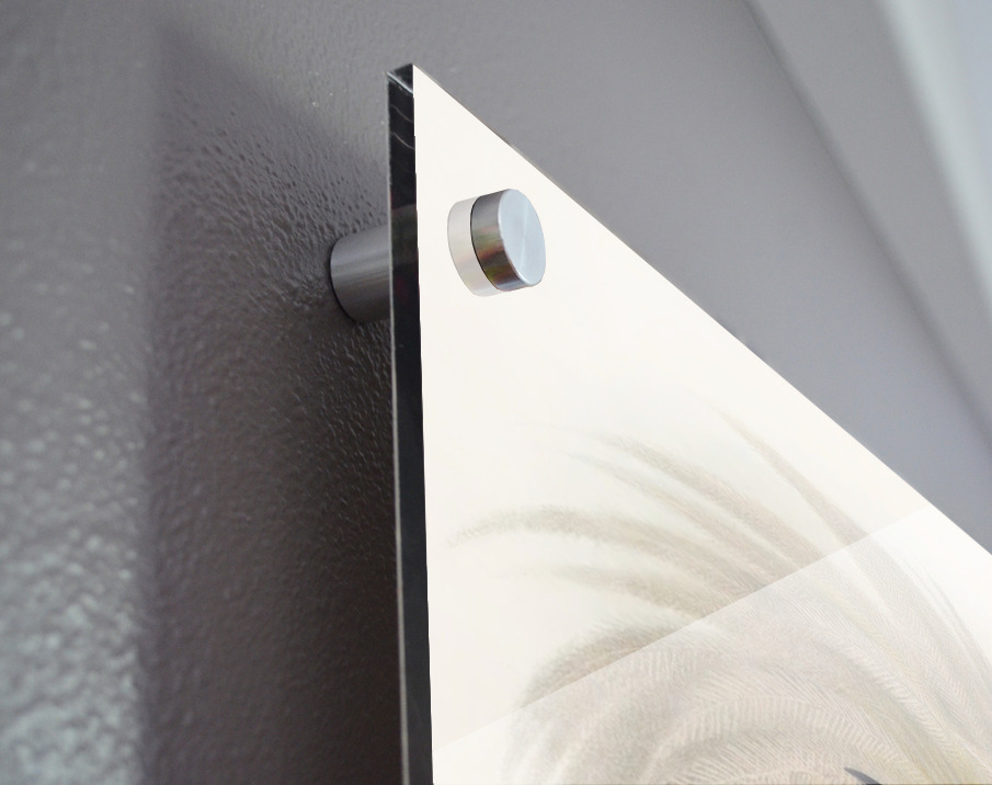 Printed to the edge - Ready to hang - provided with 4 premium polished aluminum stand off ( wall screws and mounting hardware provided ) We suggest a thicker 3/16" acrylic for any size over 42 inches to guarantee a straight acrylic, without curvature