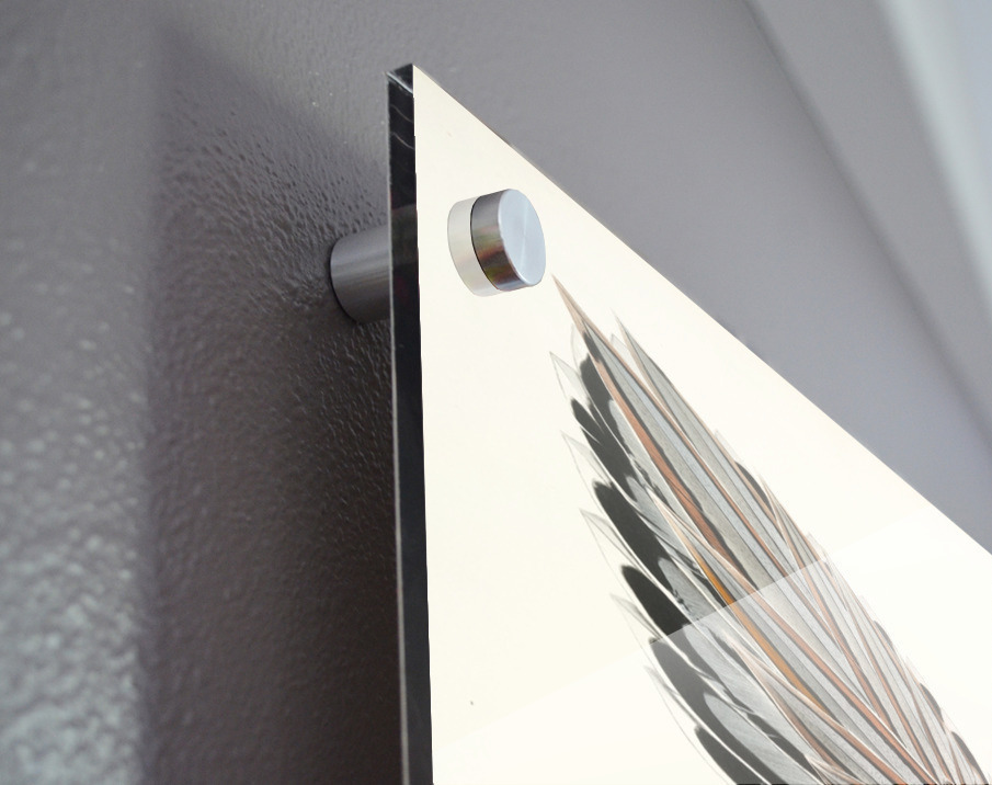 Printed to the edge - Ready to hang - provided with 4 premium polished aluminum stand off ( wall screws and mounting hardware provided )