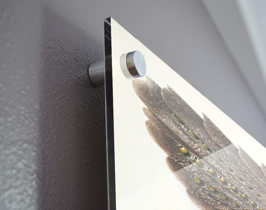 Printed to the edge - Ready to hang - provided with 4 premium polished aluminum stand off ( wall screws and mounting hardware provided ) We suggest a thicker 3/16" acrylic for any size over 42 inches to guarantee a straight acrylic, without curvature
