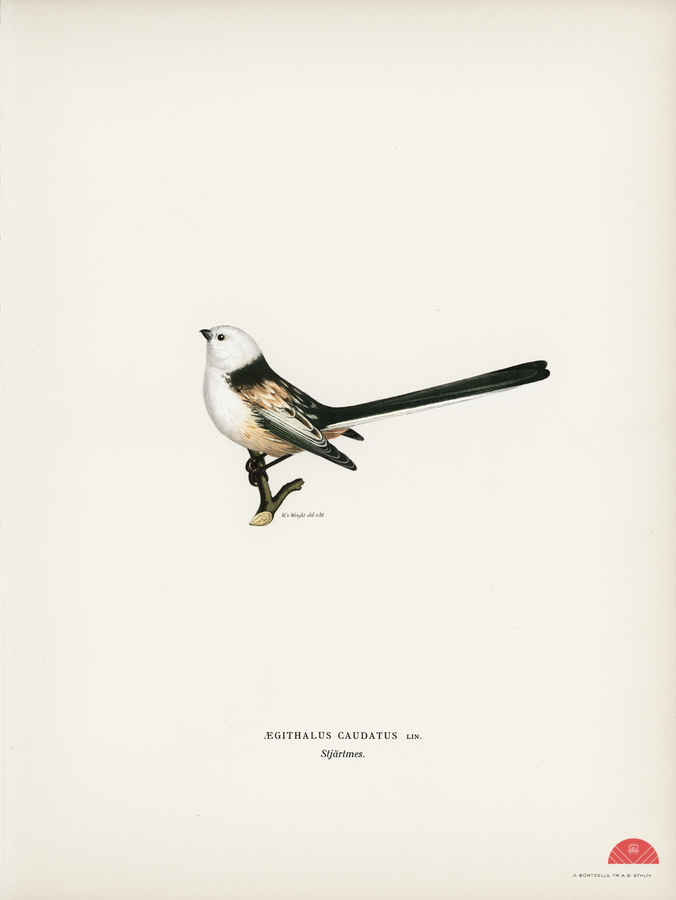 Aegithalus caudatus Long-tailed tit illustrated by Magnus von Wright 1905-1968. from 1929 folio version of Svenska Fåglar Efter Naturen Och Pa Sten Ritade.