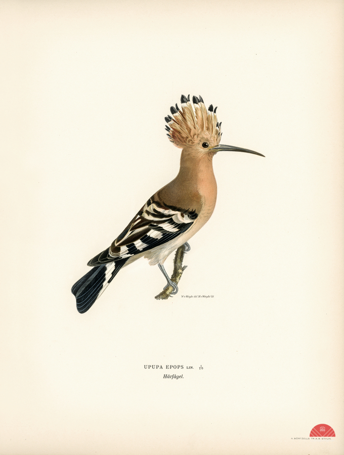 Upupa epops illustrated by Magnus von Wright 1905-1968. from 1929 folio version of Svenska Fåglar Efter Naturen Och Pa Sten Ritade.