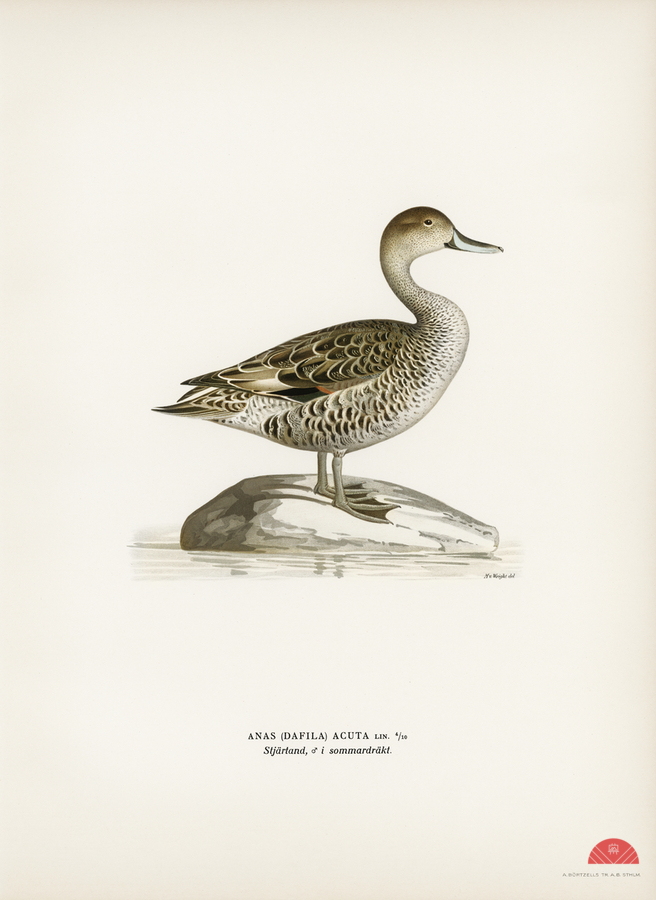 Northern Pintail Anasdafila acuta illustrated by Magnus von Wright 1905-1968. from 1929 folio version of Svenska Fåglar Efter Naturen Och Pa Sten Ritade.