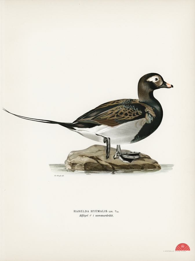 Long-tailed Duck male Harelda hyemalis illustrated by Magnus von Wright 1905-1968. from 1929 folio version of Svenska Fåglar Efter Naturen Och Pa Sten Ritade.