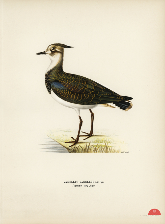 Nortnern lapwing vanellus vanellus illustrated by Magnus von Wright 1905-1968. from 1929 folio version of Svenska Fåglar Efter Naturen Och Pa Sten Ri...[+]