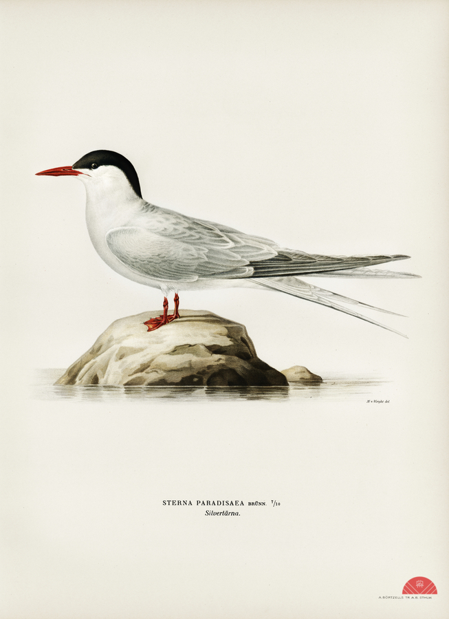 Arctic tern Sterna paradisaea illustrated by Magnus von Wright 1905-1968. from 1929 folio version of Svenska Fåglar Efter Naturen Och Pa Sten Ritade.