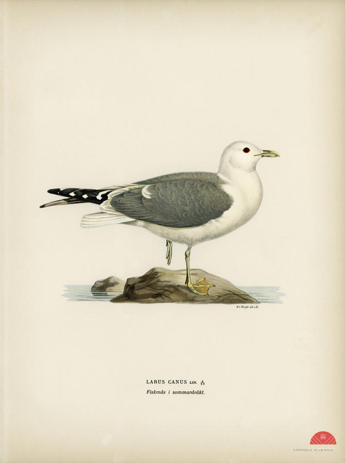 Common gull larus canu illustrated by Magnus von Wright 1905-1968. from 1929 folio version of Svenska Fåglar Efter Naturen Och Pa Sten Ritade.