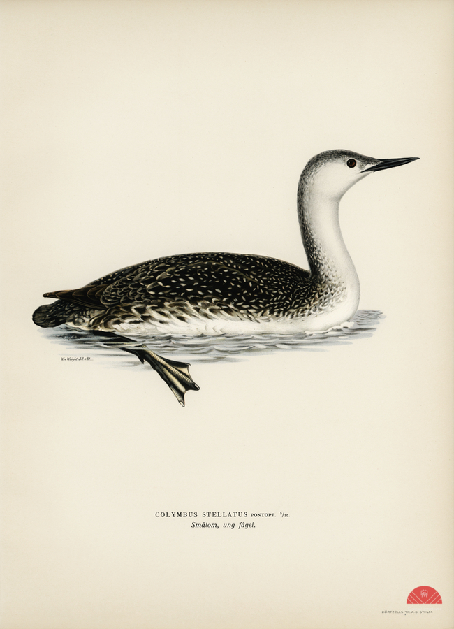 Red-thoated loon Colymbus stellatus illustrated by Magnus von Wright 1905-1968. from 1929 folio version of Svenska Fåglar Efter Naturen Och Pa Sten Ritade.