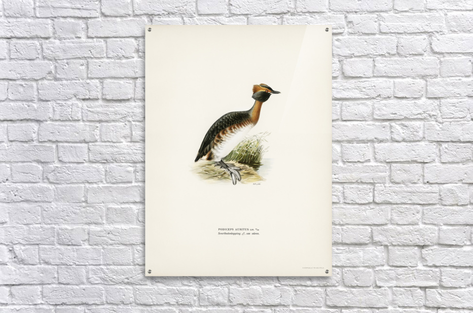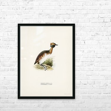 Horned grebe-in spring Podiceps auritus illustrated by Magnus von Wright 1905-1968. from 1929 folio version of Svenska Fåglar Efter Naturen Och Pa St...[+]