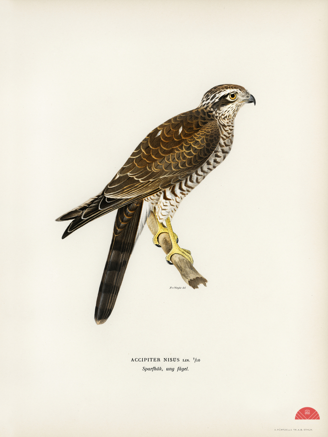 Eurasian Sparrowhawk Accipiter nisus illustrated by Magnus von Wright 1905-1968. from 1929 folio version of Svenska Fåglar Efter Naturen Och Pa Sten Ritade.