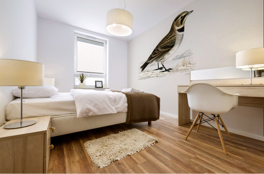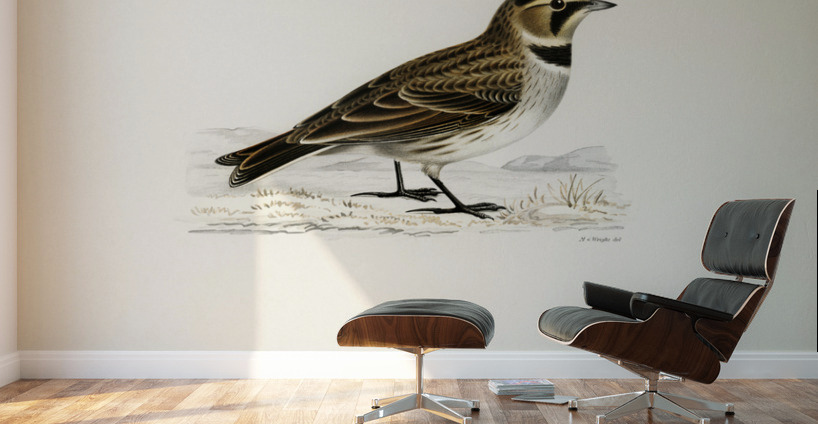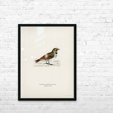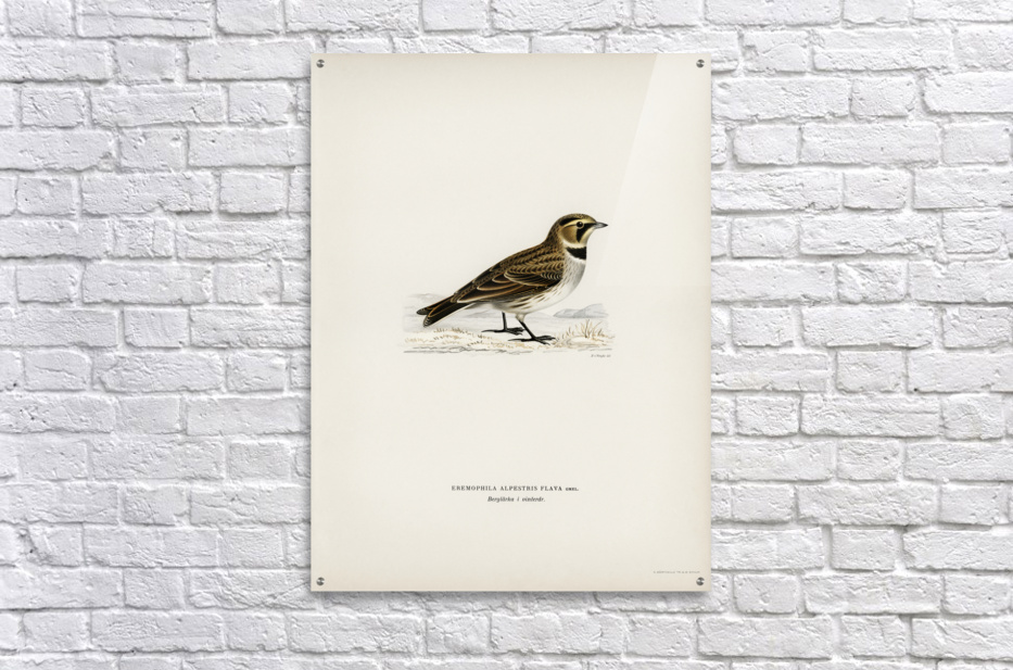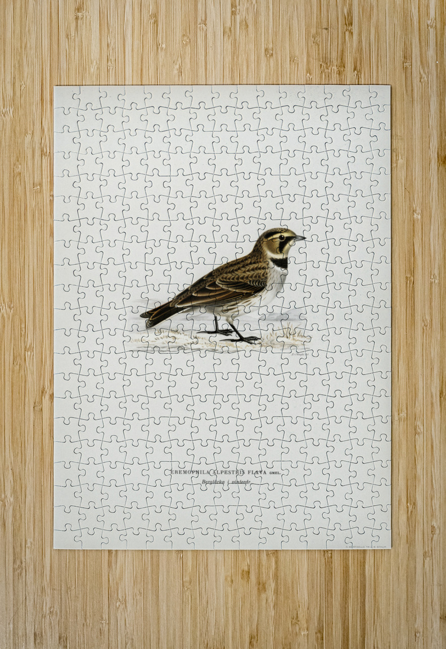 Horned lark Eremophila alpestris flava illustrated by Magnus von Wright 1905-1968. from 1929 folio version of Svenska Fåglar Efter Naturen Och Pa Ste...[+]