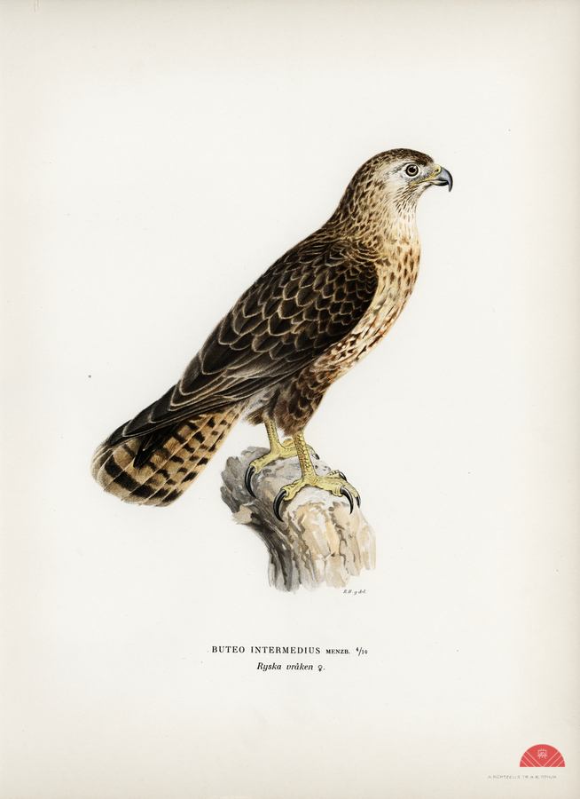 Common Buzzard Buteo buteo intermedius illustrated by Magnus von Wright 1905-1968. from 1929 folio version of Svenska Fåglar Efter Naturen Och Pa Ste...[+]