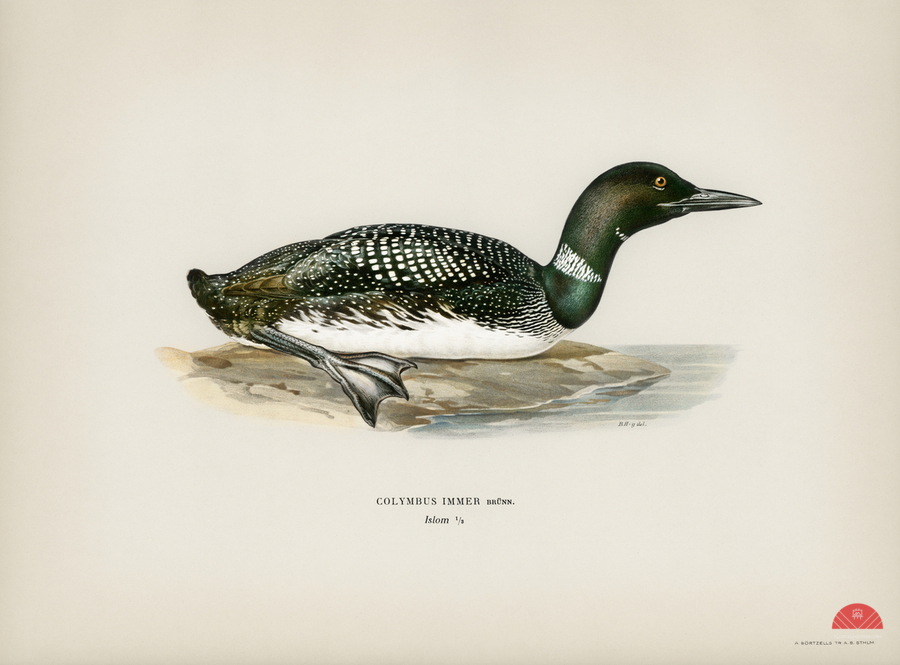 Common loon Colymbus immer illustrated by Magnus von Wright 1905-1968. from 1929 folio version of Svenska Fåglar Efter Naturen Och Pa Sten Ritade.