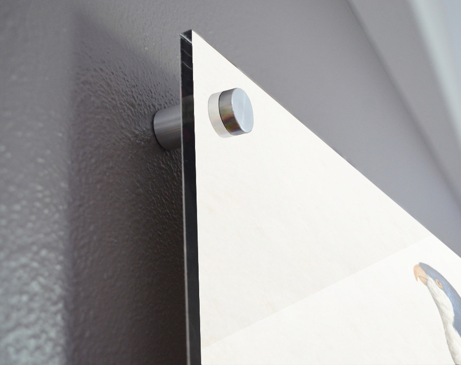 Printed to the edge - Ready to hang - provided with 4 premium polished aluminum stand off ( wall screws and mounting hardware provided ) We suggest a thicker 3/16" acrylic for any size over 42 inches to guarantee a straight acrylic, without curvature