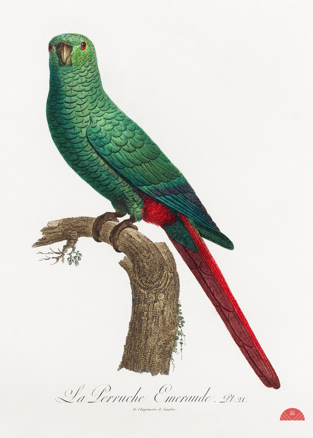 The Emerald Parakeet from Natural History of Parrots 1801—1805 by Francois Levaillant.