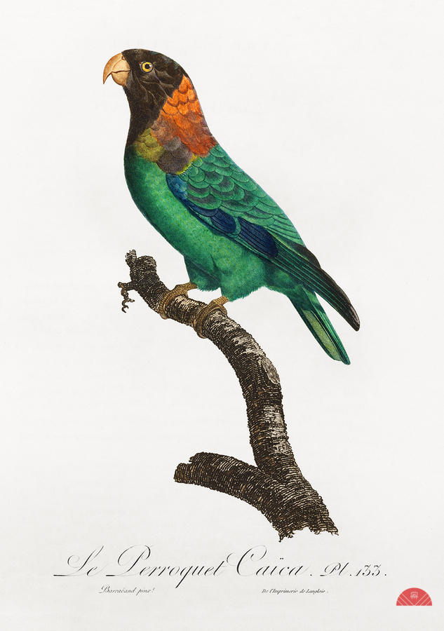 The Caica Parrot Pyrilia caica from Natural History of Parrots 1801—1805 by Francois Levaillant.