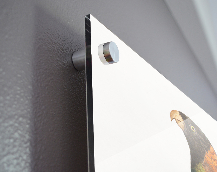 Printed to the edge - Ready to hang - provided with 4 premium polished aluminum stand off ( wall screws and mounting hardware provided ) We suggest a thicker 3/16" acrylic for any size over 42 inches to guarantee a straight acrylic, without curvature