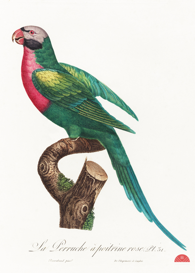 The Red-Breasted Parakeet Psittacula alexandri from Natural History of Parrots 1801—1805 by Francois Levaillant.