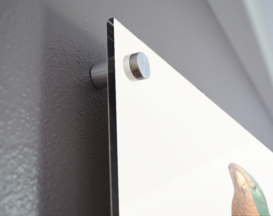 Printed to the edge - Ready to hang - provided with 4 premium polished aluminum stand off ( wall screws and mounting hardware provided ) We suggest a thicker 3/16" acrylic for any size over 42 inches to guarantee a straight acrylic, without curvature