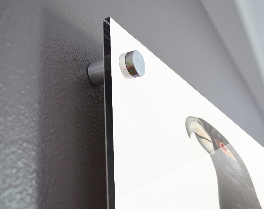 Printed to the edge - Ready to hang - provided with 4 premium polished aluminum stand off ( wall screws and mounting hardware provided ) We suggest a thicker 3/16" acrylic for any size over 42 inches to guarantee a straight acrylic, without curvature