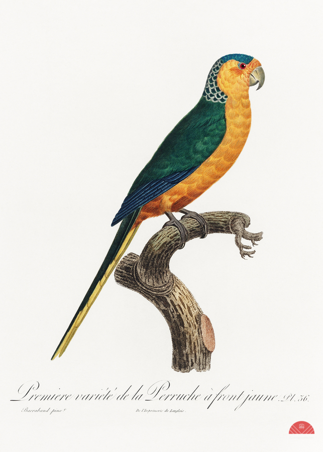 The Yellow-Fronted Parakeet Cyanoramphus auriceps from Natural History of Parrots 1801—1805 by Francois Levaillant.