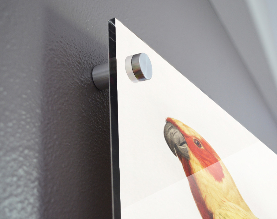 Printed to the edge - Ready to hang - provided with 4 premium polished aluminum stand off ( wall screws and mounting hardware provided ) We suggest a thicker 3/16" acrylic for any size over 42 inches to guarantee a straight acrylic, without curvature