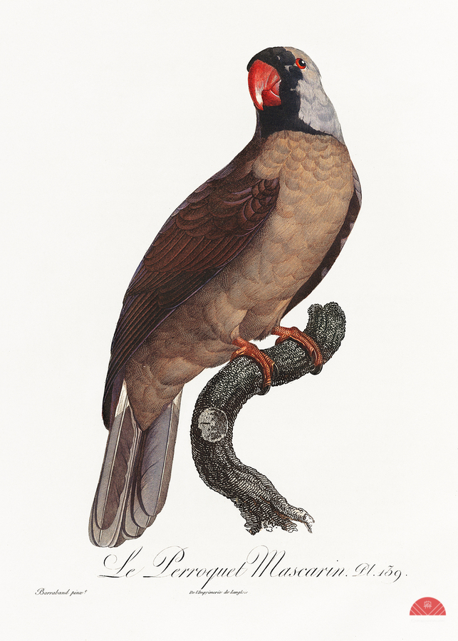 Mascarine Parrot from Natural History of Parrots 1801—1805 by Francois Levaillant.