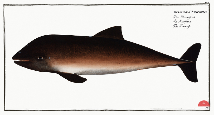 Porpesse Delphinus Phocoena from Ichtylogie ou Histoire naturelle: génerale et particuliére des poissons 1785-1797 by Marcus Eliser 1723-1799