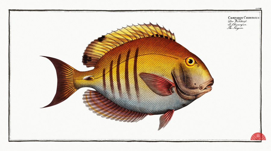 Surgeon Chaetodon Chirurgus from Ichtylogie ou Histoire naturelle: génerale et particuliére des poissons 1785-1797 by Marcus Eliser 1723-1799