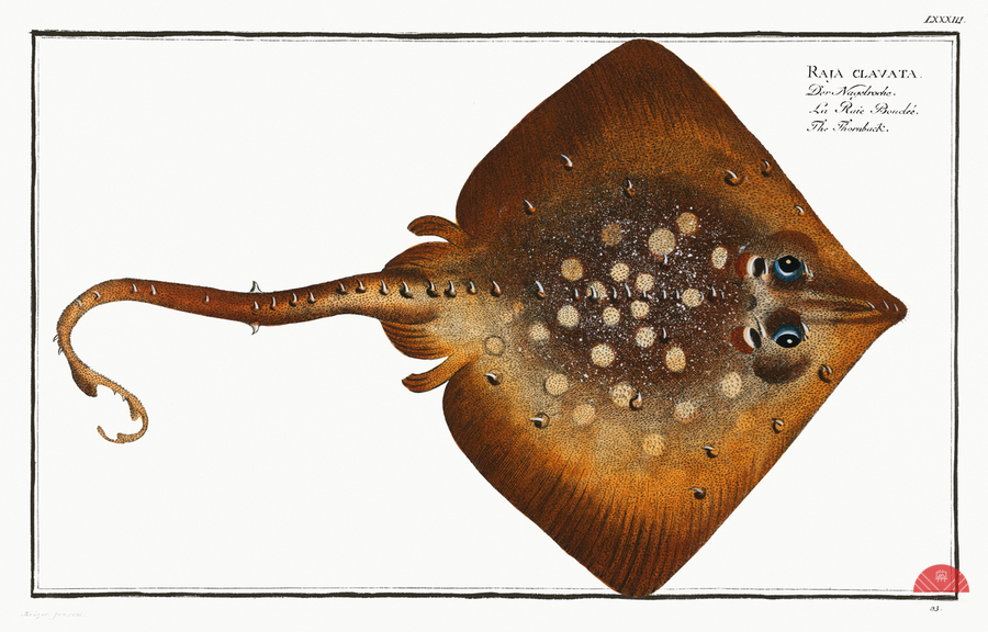 Thornback Raja clavata from Ichtylogie ou Histoire naturelle: génerale et particuliére des poissons 1785-1797 by Marcus Eliser 1723-1799
